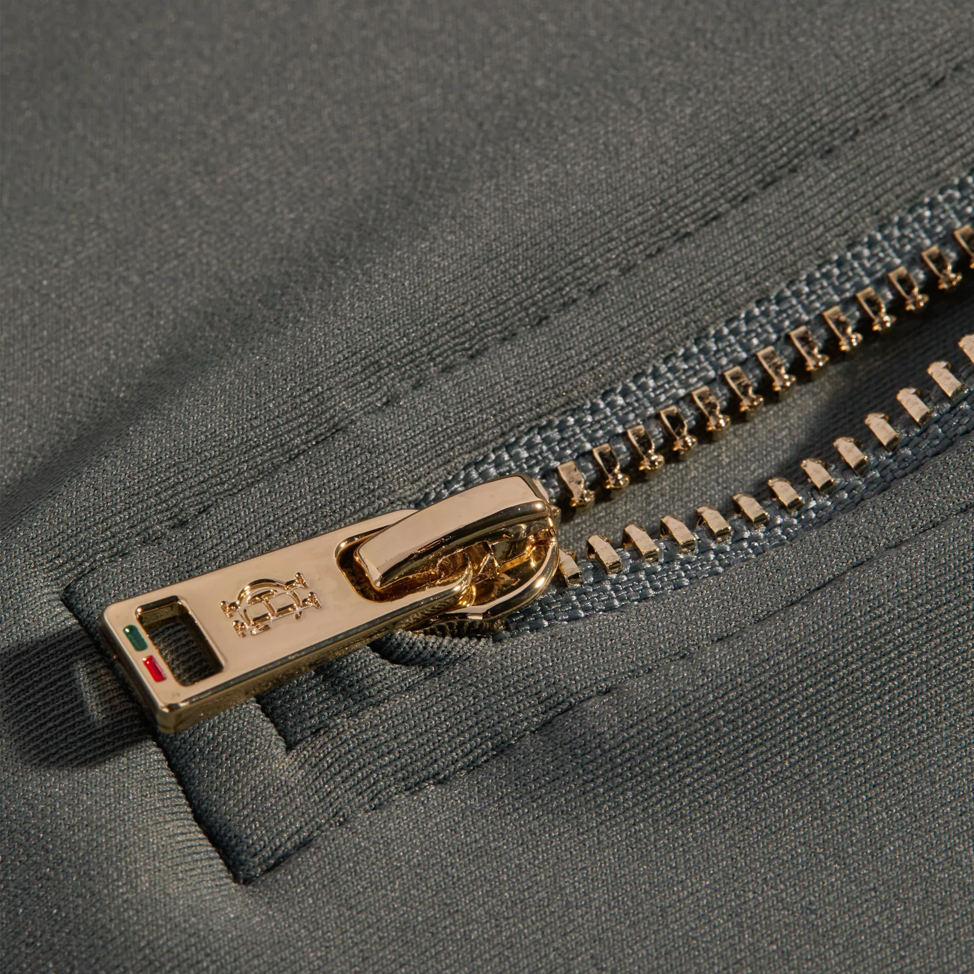 • Monogrammed gold zip puller