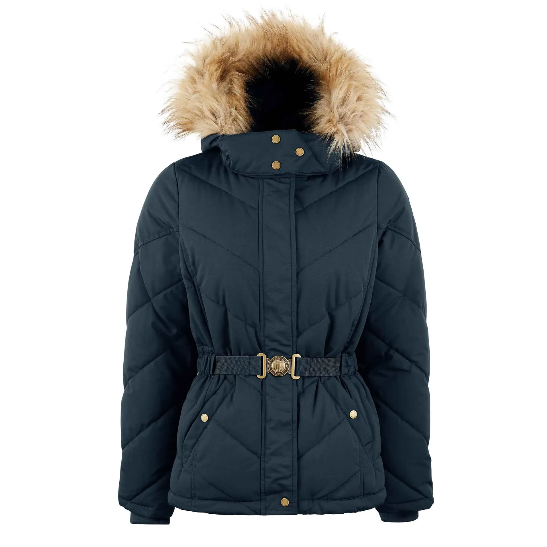 Detailed with a military style branded belt and finished off with a stunning faux fur trim, this Fairfax & Favor jacket is certainly a wardrobe staple.