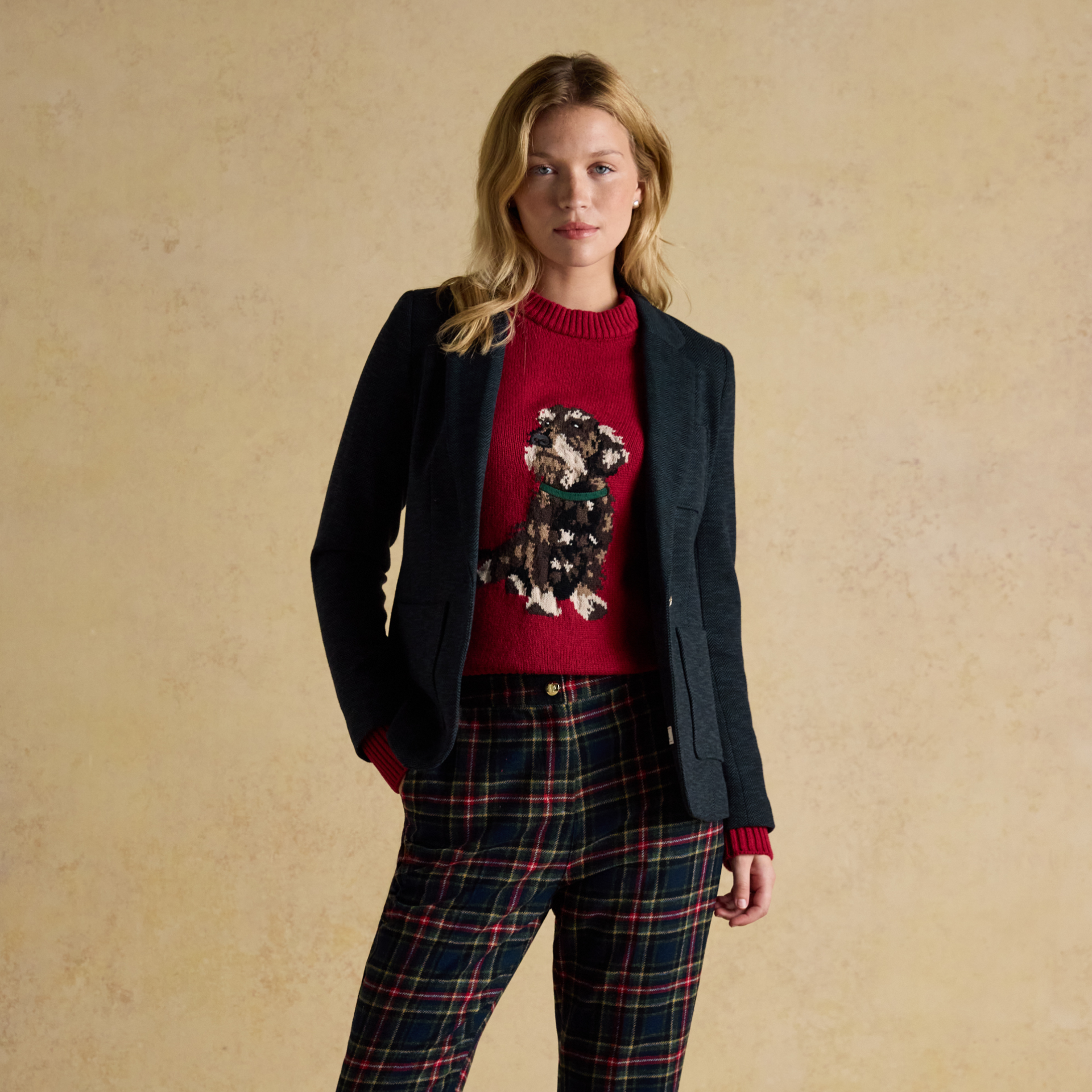 The Joules Ladies Albury Jacket is a polished, preppy layer with a collegiate-inspired look. Designed with a neat, structured fit and crafted from soft cotton jersey, it features a single-button fastening, lapel collar, and subtle shoulder padding to create a flattering, feminine silhouette. Thoughtful details such as kissing buttons at the cuffs, a chain hanging loop at the back neck, and Joules embroidered branding under the collar add a refined finishing touch.