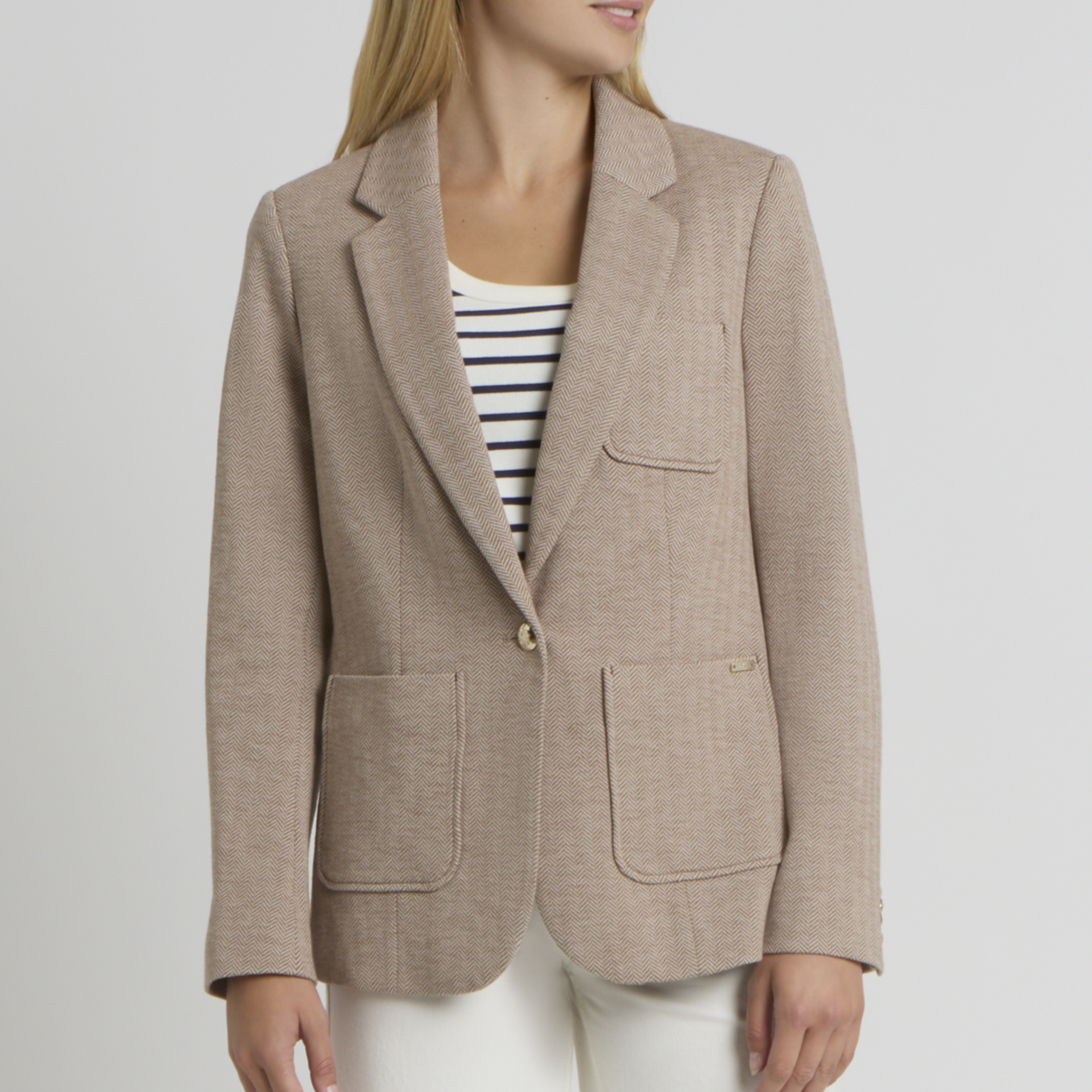 • Style: structured jacket with single-button fastening