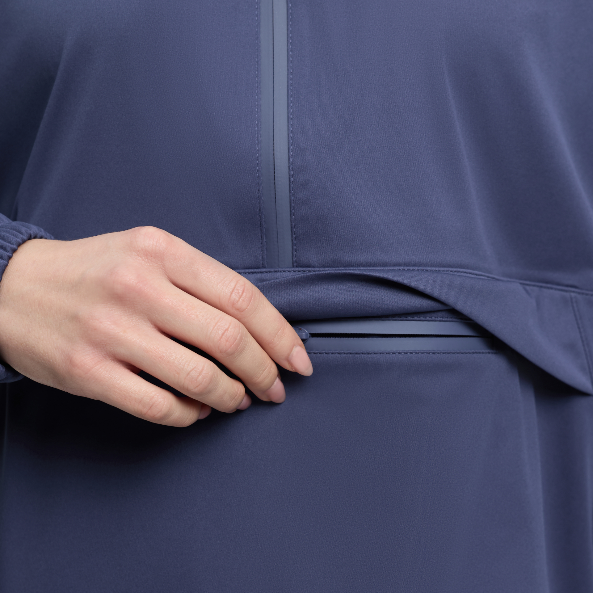 • Removable hood and half zip design