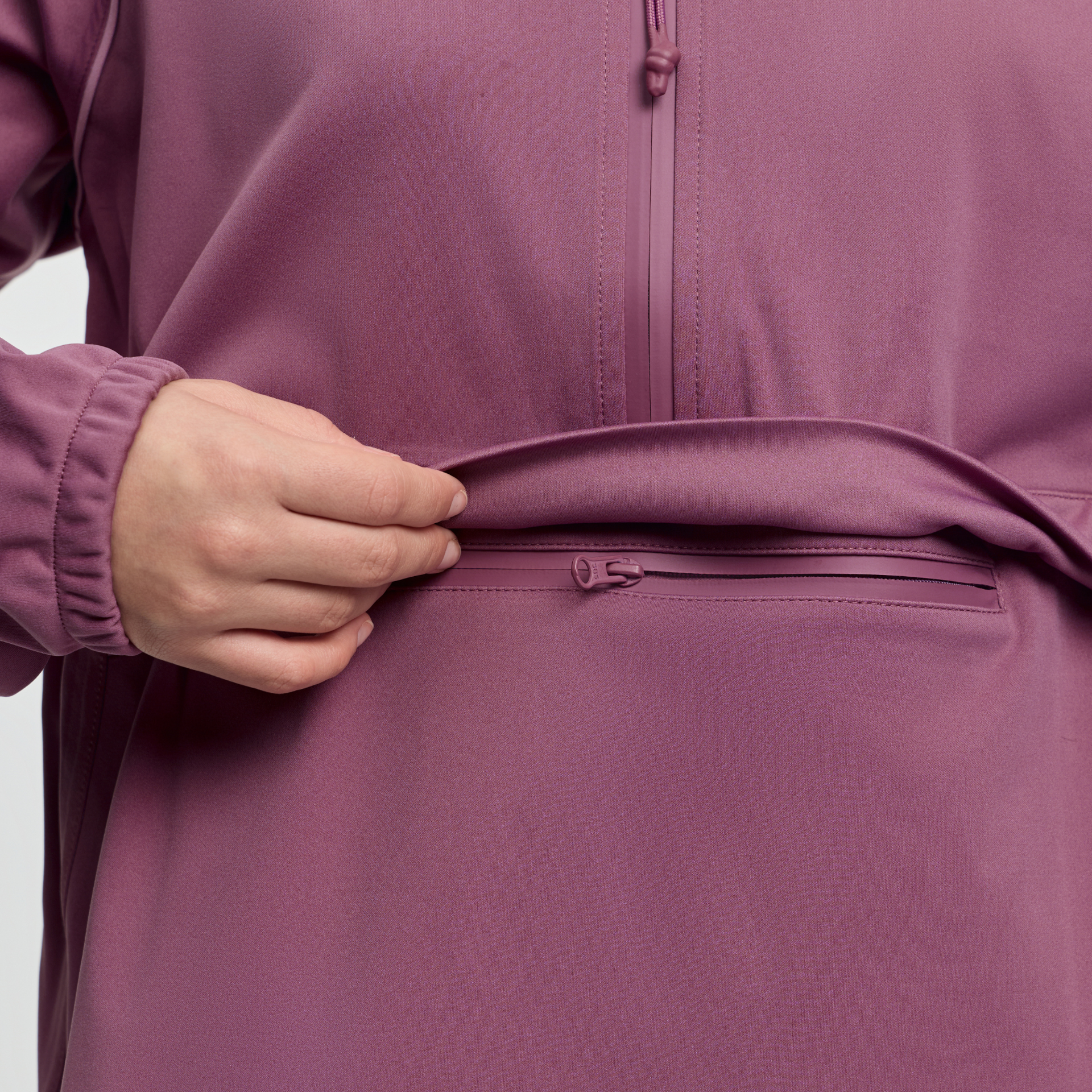 • Removable hood and half-zip front for versatility