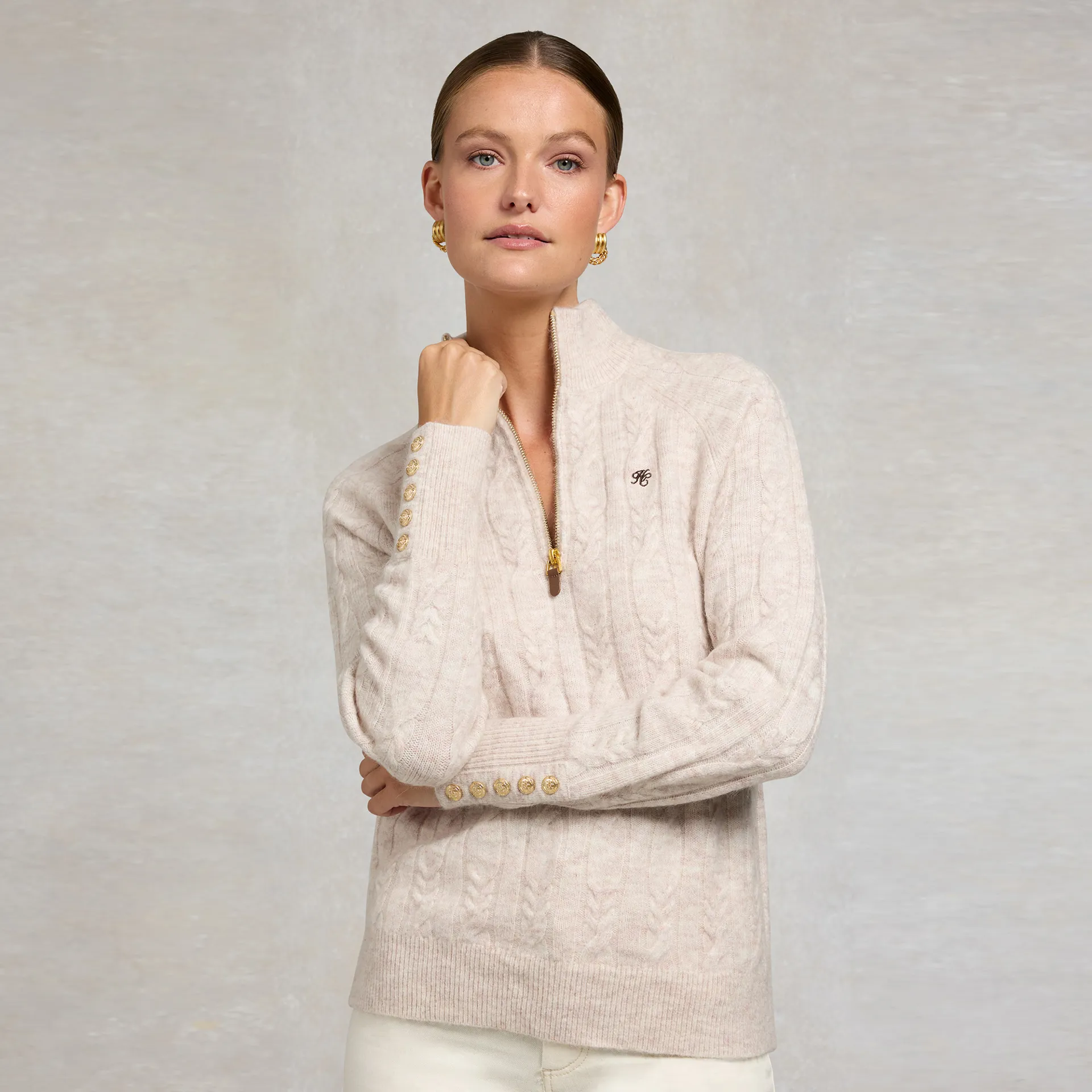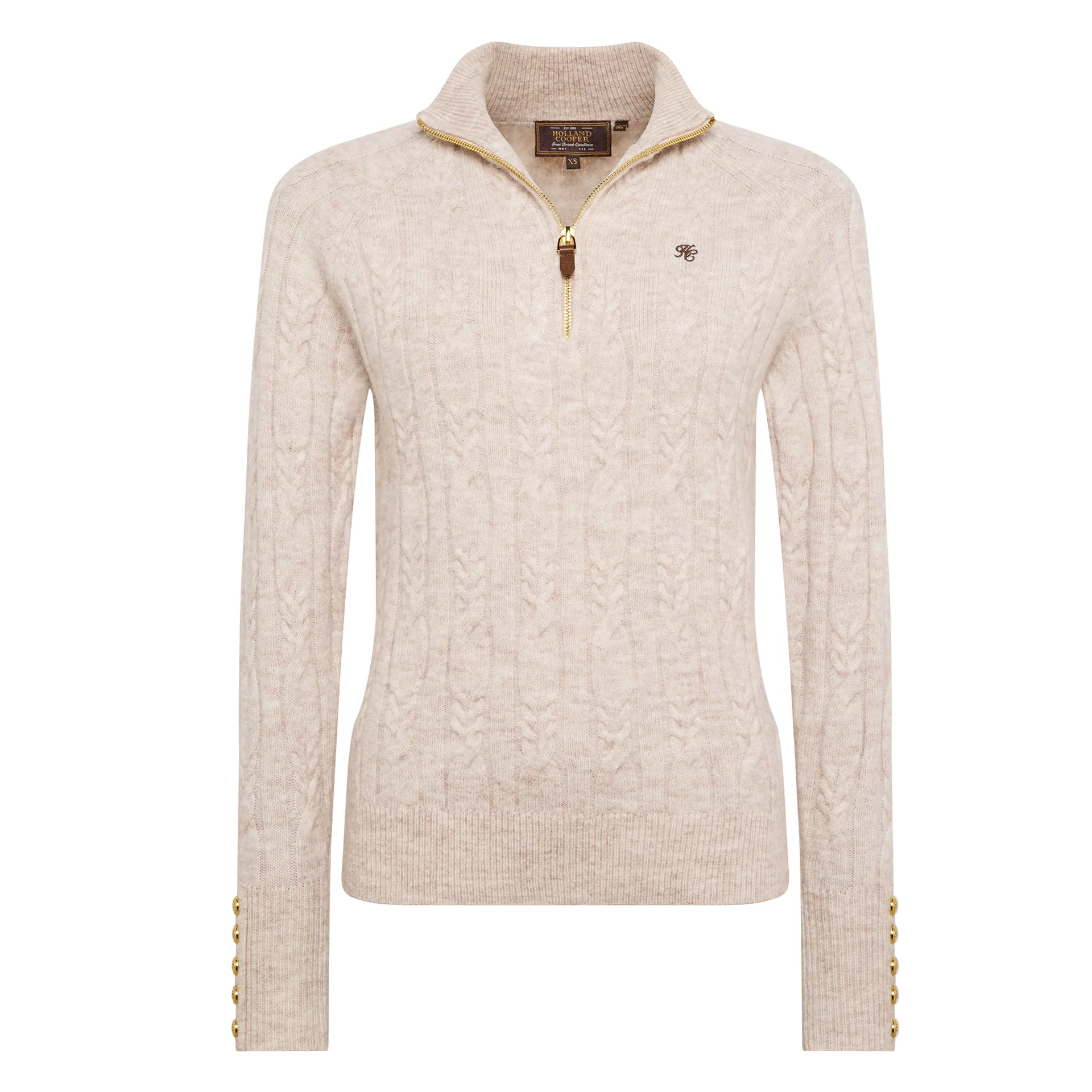 Question(s) answered about Holland Cooper Bridget Quarter Zip Knit - Barley