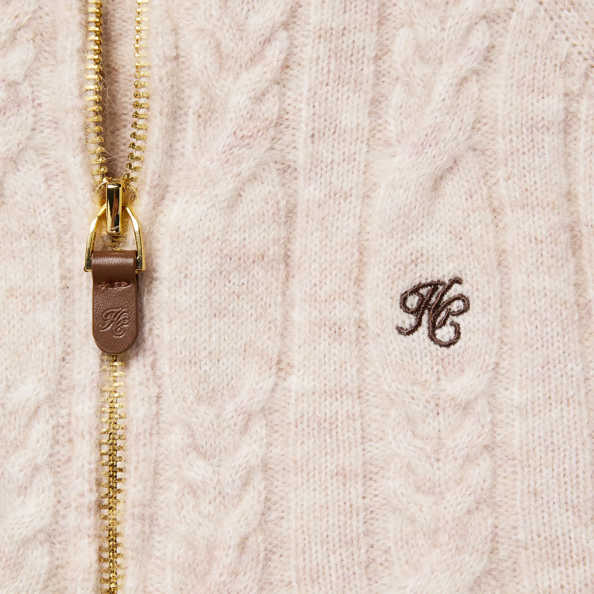 Finished off with a concealed zipper and signature hardware at the cuffs, this versatile knit is ideal for layering in cooler months. A true wardrobe essential that balances softness, warmth, and effortless style.