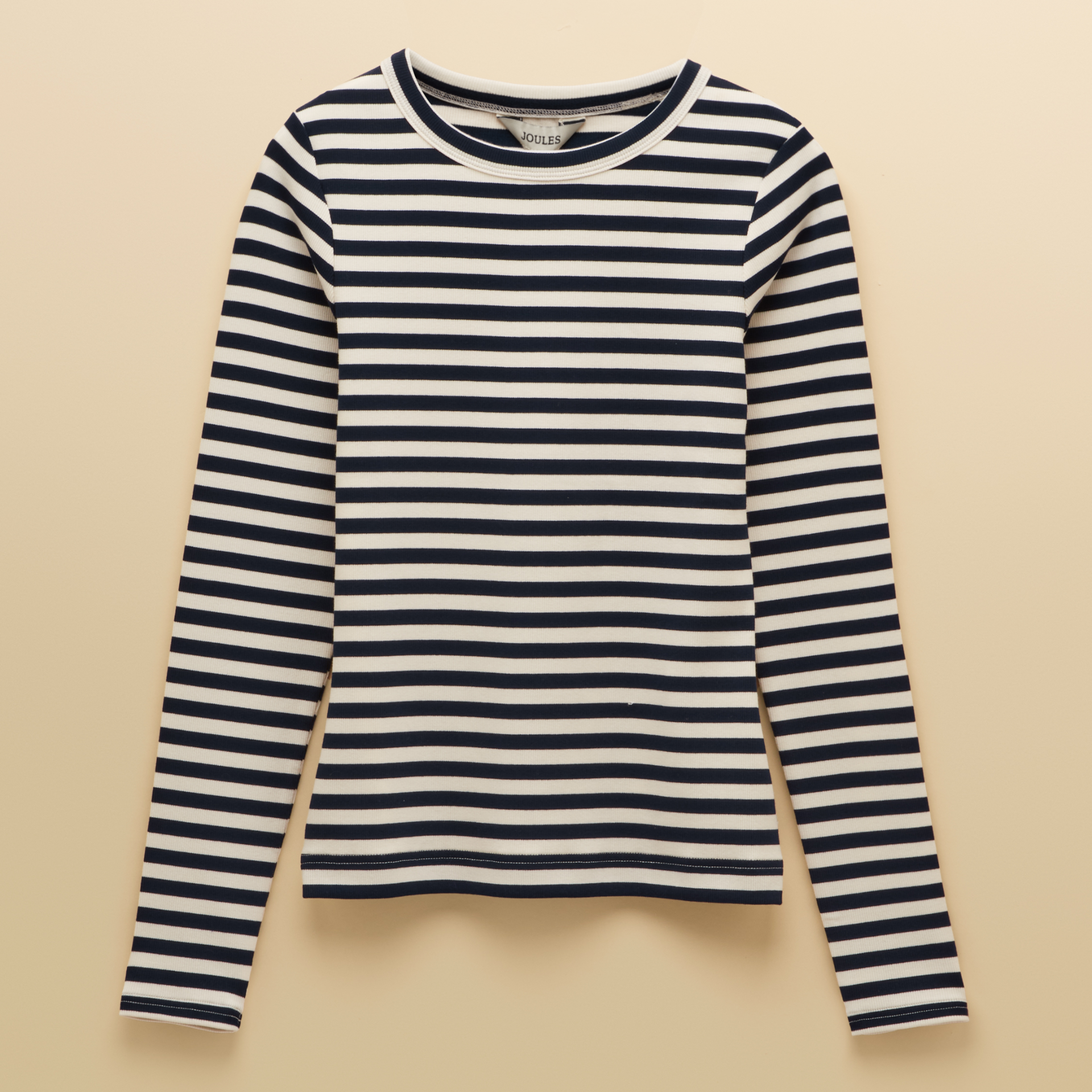 The Joules Ladies Sophie T-Shirt is a versatile wardrobe staple that you'll reach for again and again. Designed with a fitted shape, it features classic stripes, a crew neck, and long sleeves. Made from soft, cotton-rich ribbed fabric, it pairs effortlessly with denim, linen, and more for a stylish, everyday look.