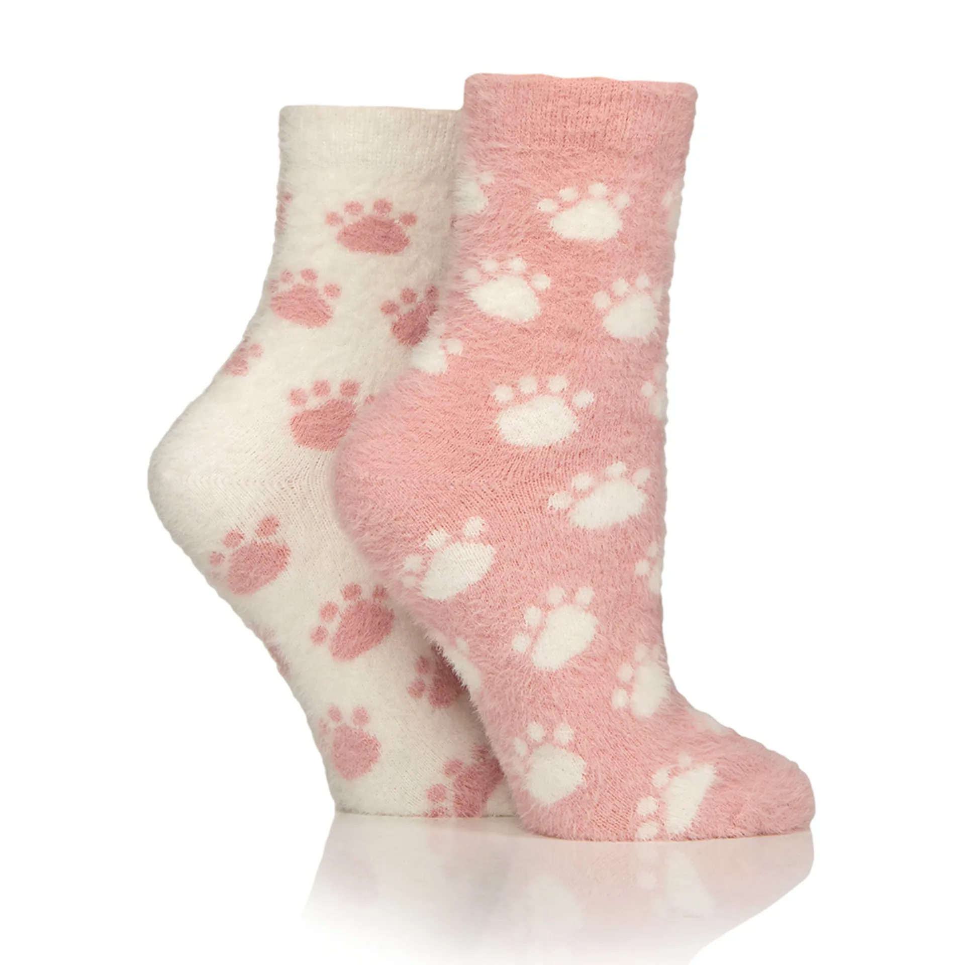 Wildfeet Ladies Fluffy Feather Socks 2 Pack - Dog Paw