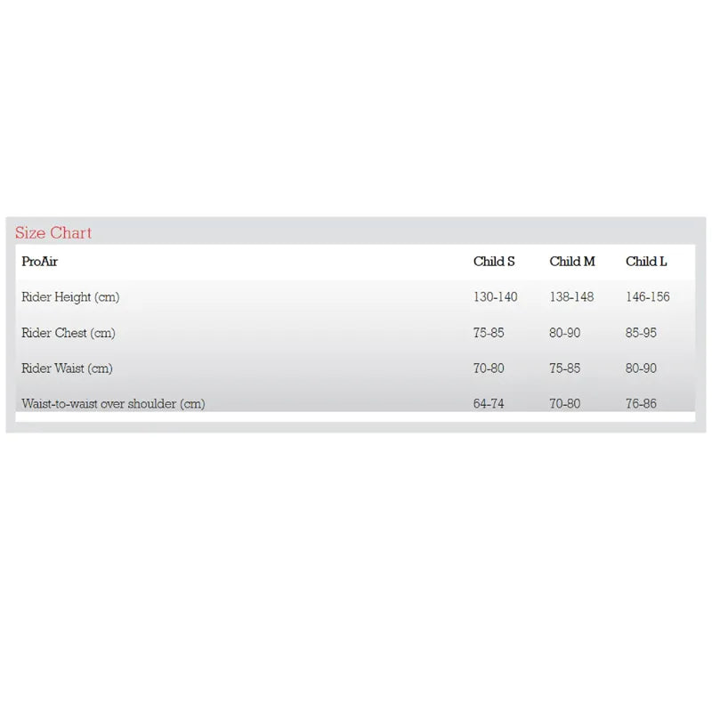 The ProAir will hold the child tight for 15-20 seconds and then slowly deflate over two to three minutes. While the jacket is inflated, the rider will continue to have full movement of their waist, arms and legs, and partial movement of their head.