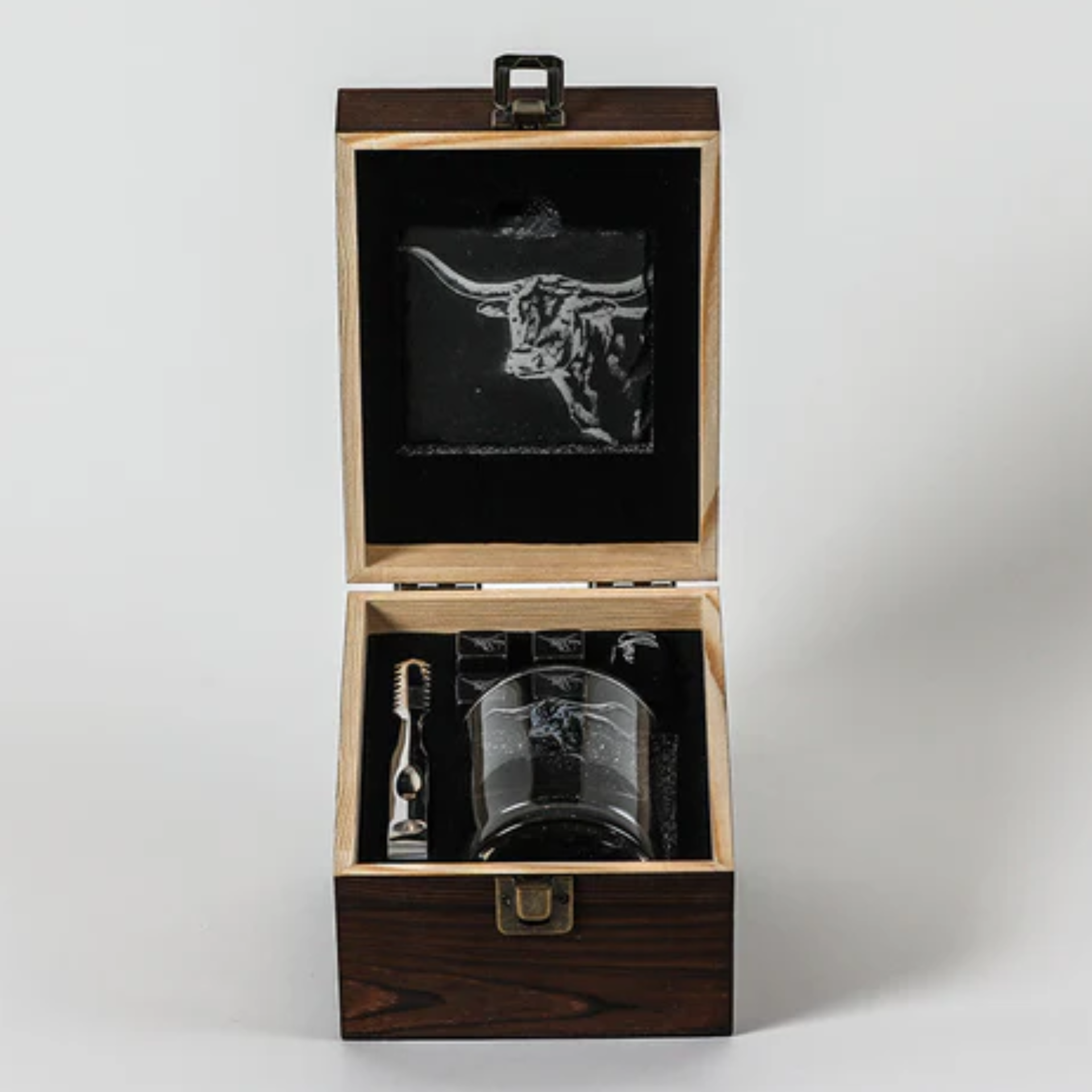 Texas Longhorn Drinks Set celebrates the bold spirit of Texas with a beautifully curated collection of whisky accessories, featuring iconic longhorn cattle imagery. Perfect for whisky or bourbon lovers, this elegant set makes an ideal gift.