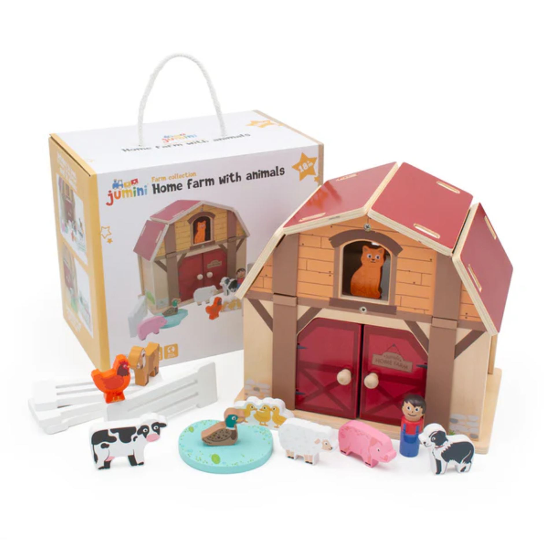 The Inside Out Toys Home Farm Barn Set is the centrepiece of the charming Farm Collection. This engaging playset features removable roof and wall panels that double as farmland, along with four fences that can be used to create enclosed fields.