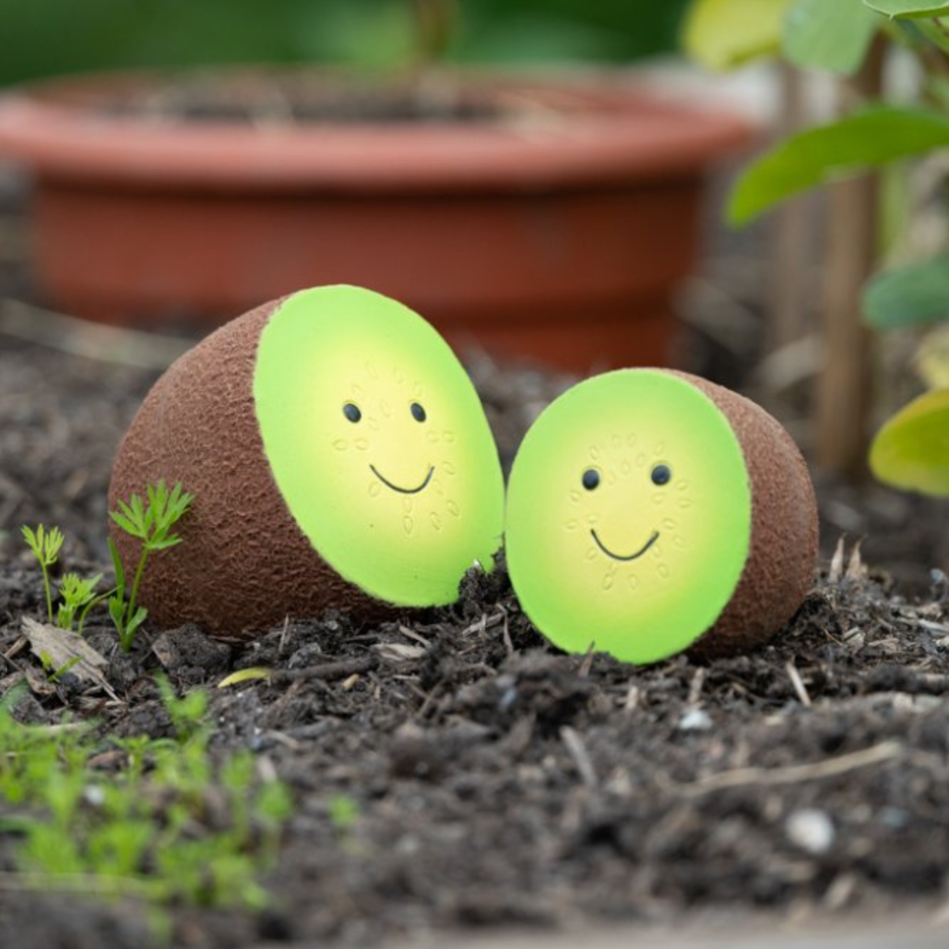 • Petface Foodie Faces Latex Kiwi soft chew dog toy with built-in squeaker