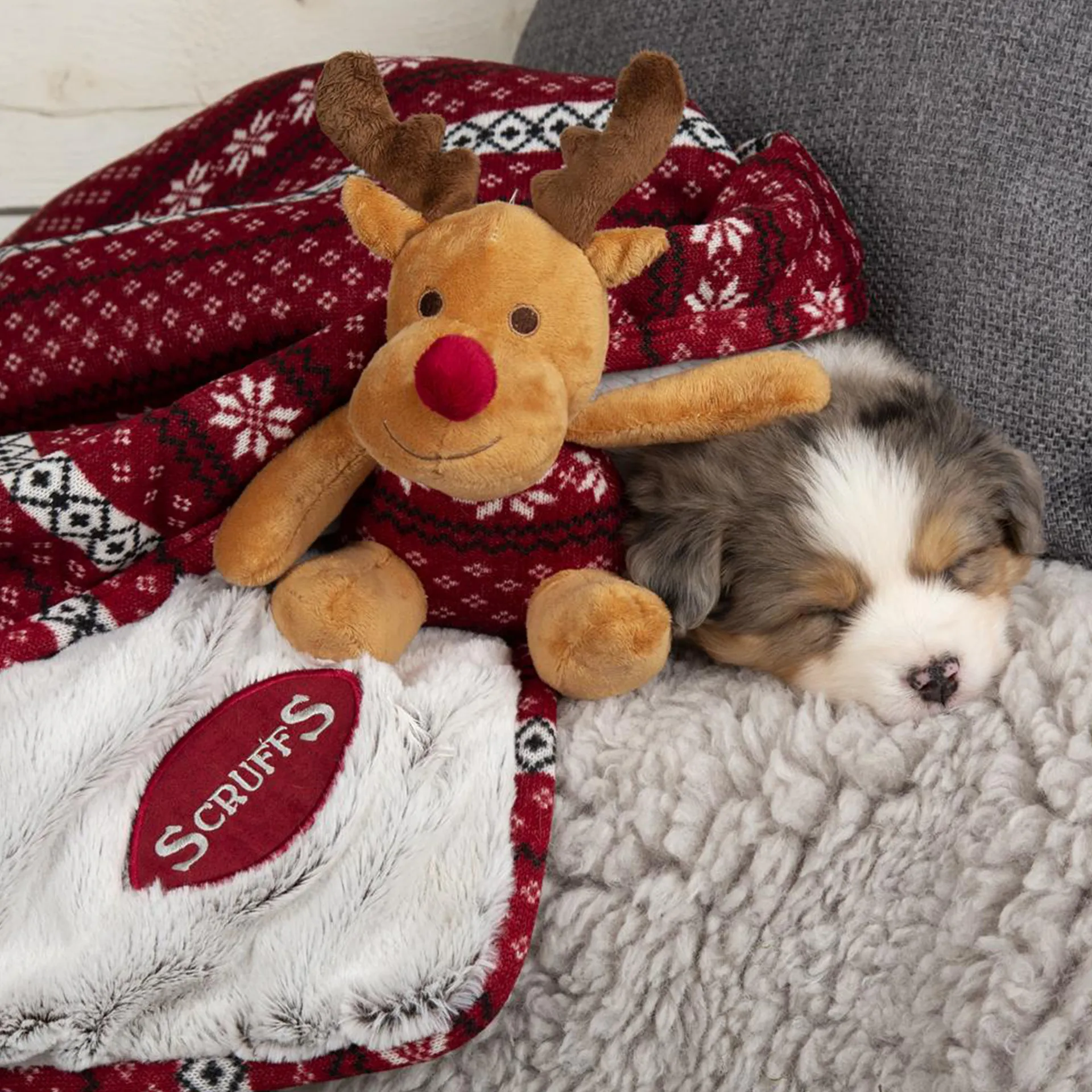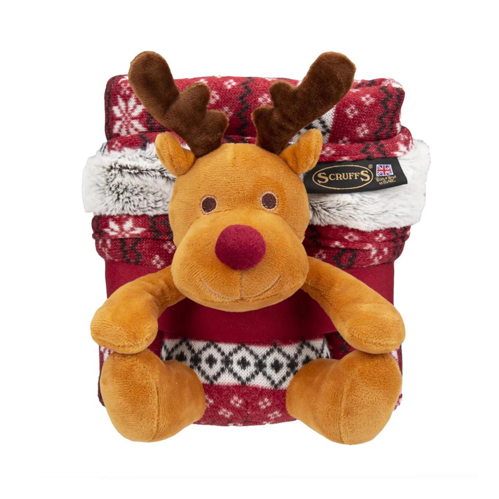 Question(s) answered about Scruffs Santa Paws Blanket and Reindeer Gift Set - Burgundy