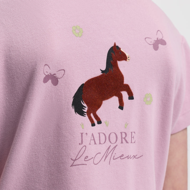 Thoughtful details elevate this everyday piece, including a front button placket, ribbed collar, capped sleeves, and tonal buttons for a smart finish. The standout feature is the adorable ‘J’adore LeMieux’ back graphic, complete with glitter accents and a flocked textured pony design - available in Lemon or Chancer. Perfect for creating a coordinated look with Mini LeMieux accessories.