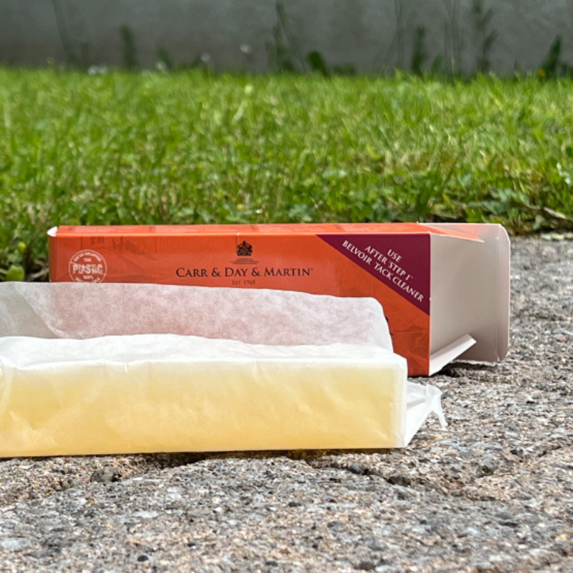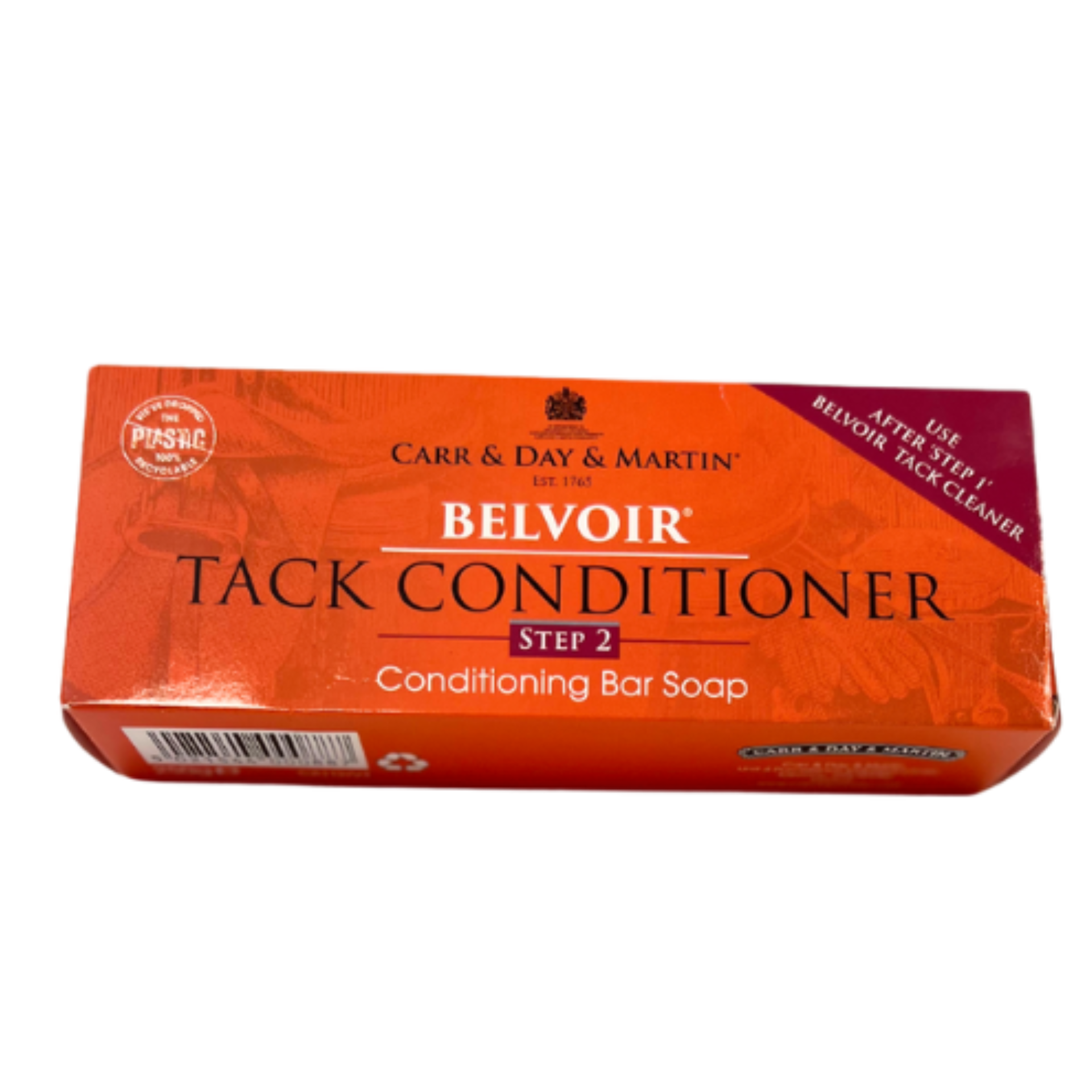 The Carr & Day & Martin Belvoir Step 2 Conditioner Soap now comes wrapped in glassine paper and packaged in a recyclable cardboard case. This traditional conditioning bar cleans, nourishes, and adds a natural shine to leather, keeping your tack soft, supple, and protected.