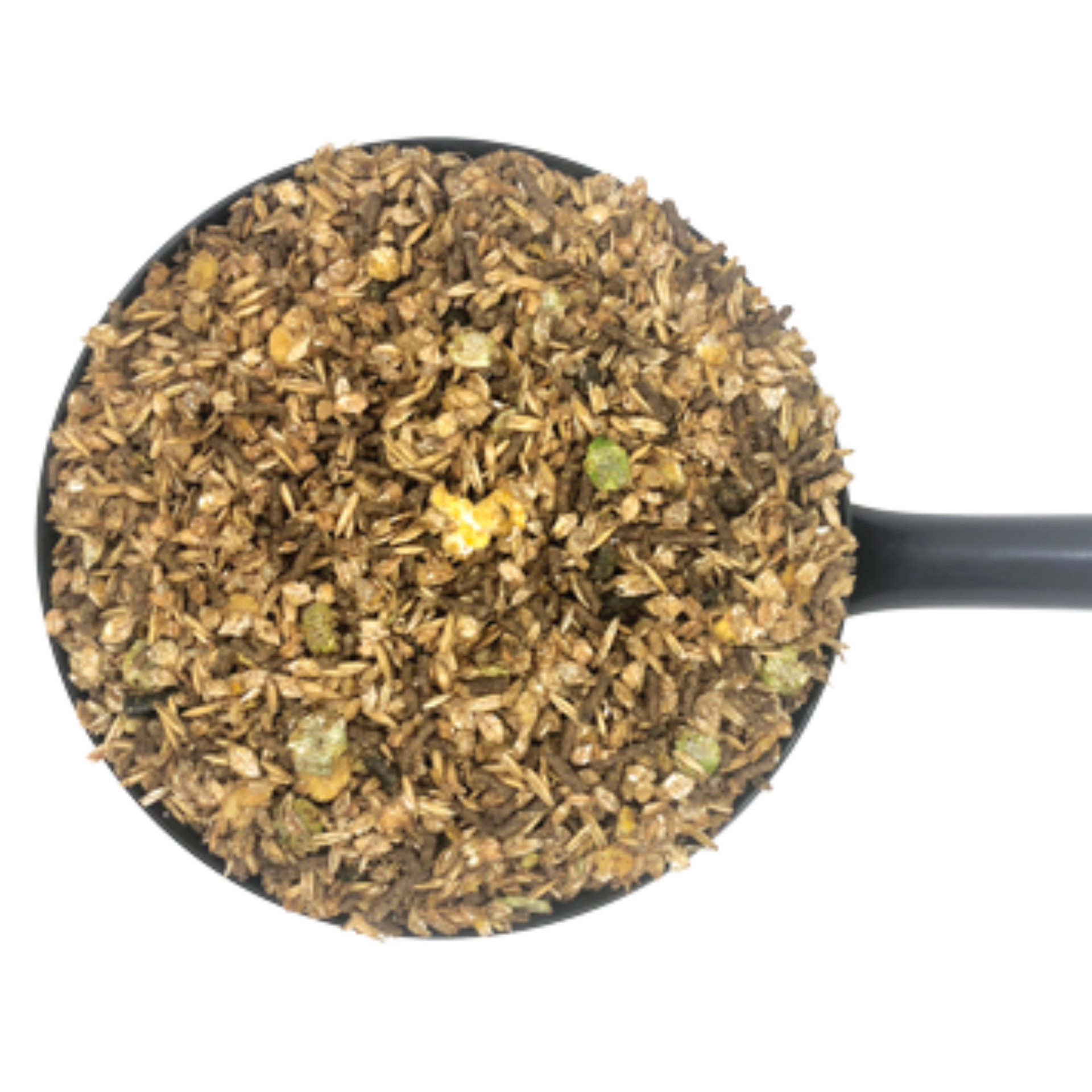 Flaked Barley, Oats, Flaked Wheat, Wheatfeed, Sunflower Seed Meal, Dehulled, Grass, Dried, Molasses, Soya (bean) Meal, Dehulled, Flaked Soya (non-GM), Flaked Maize, Micronised Linseed Meal, Calcium Carbonate, Flaked Peas, Dicalcium Phosphate, Dried Beet Pulp, Linseed Expeller, Sodium Chloride, Rapeseed Oil, Magnesium Oxide, Fructo-Oligosaccharides, Mannan-Oligosaccharides, Basil, Mint, Blackcurrant, Oregano, Pomegranate