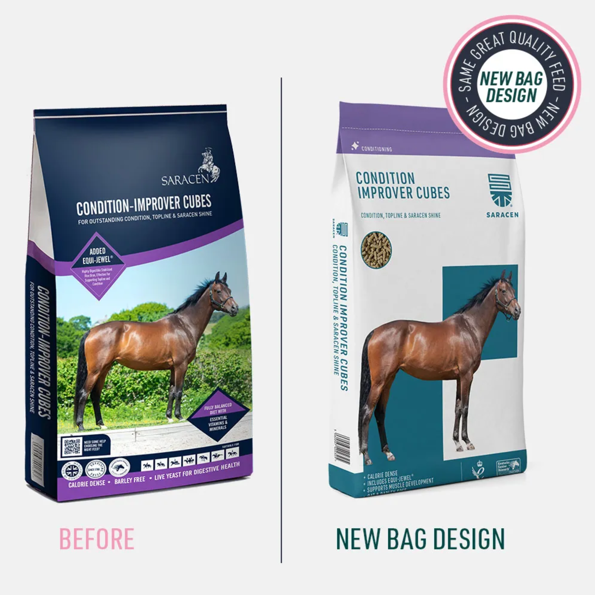Saracen Condition Improver Cubes provide slow-release energy, ideal for horses needing support with muscle development, particularly during early training. Available to buy online for Click & Collect or in-store at R&R Country.